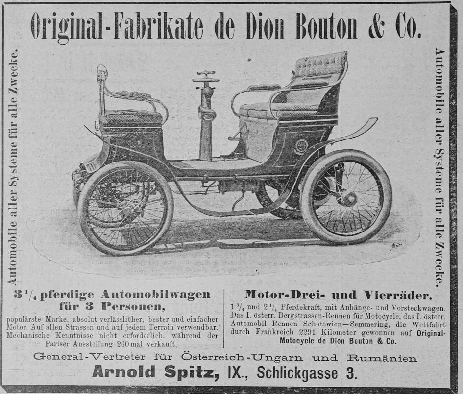 Dreiräder; eine bekannte französische Marke war De Dion-Bouton. Ergebnislisten dieses