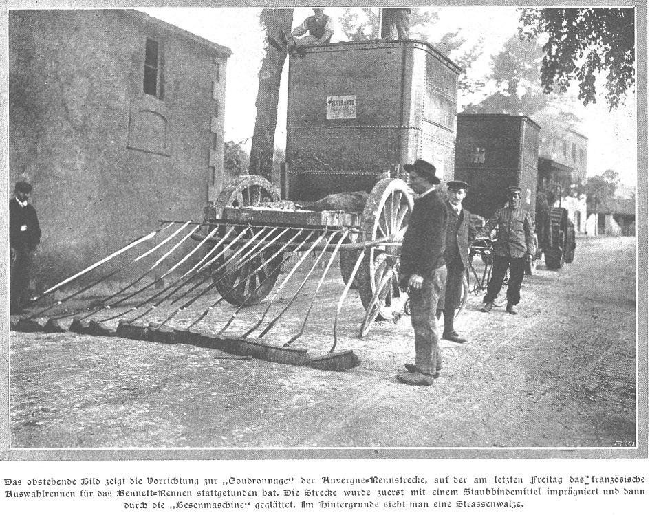 das Gordon-Bennett-Rennen wird zunächst mit einem Staubbindemittel imprägniert