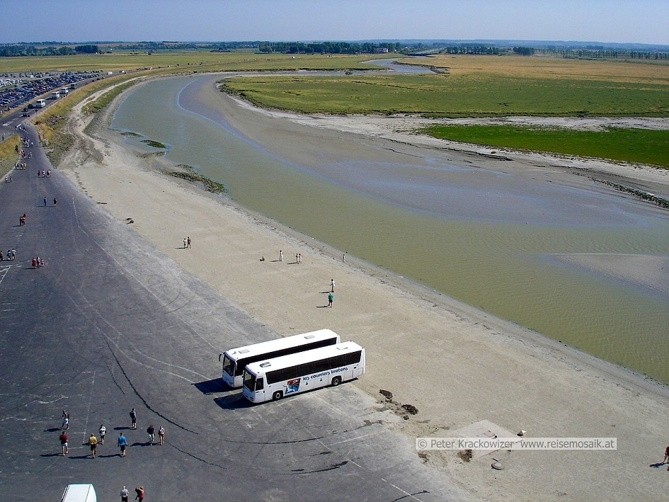 Der Parkplatz von Mont Saint-Michel bei Einsetzen der Flut im Sommer 1993