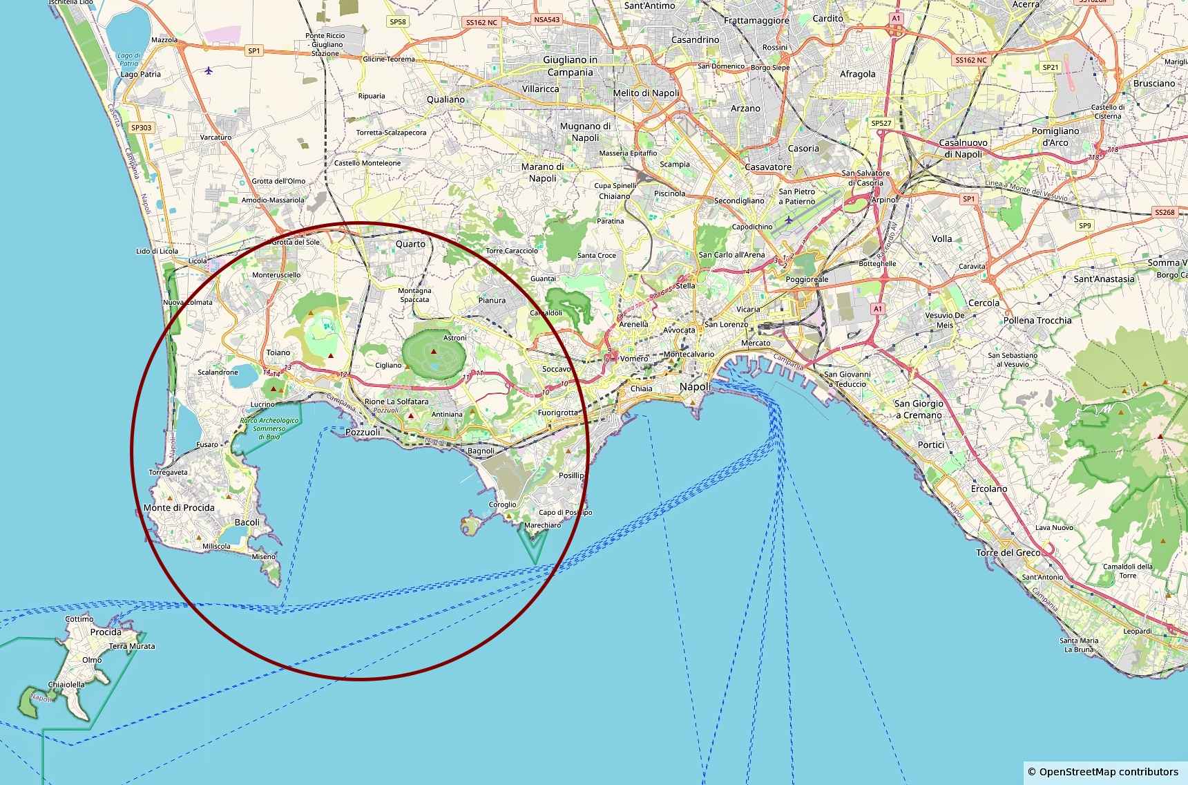 westlich von Neapel. Das Epizentrum lag rund 20 Kilometer westlich des Vesuvs.