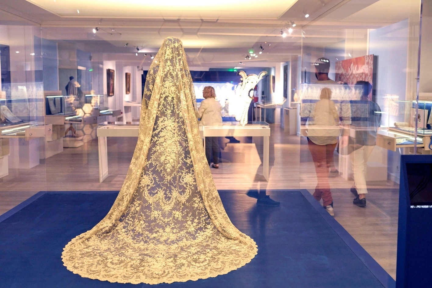 Sehenswert ist der 3,50 m lange Brautschleier, ein seltenes Werk, für das fast 500 ;000 (!)