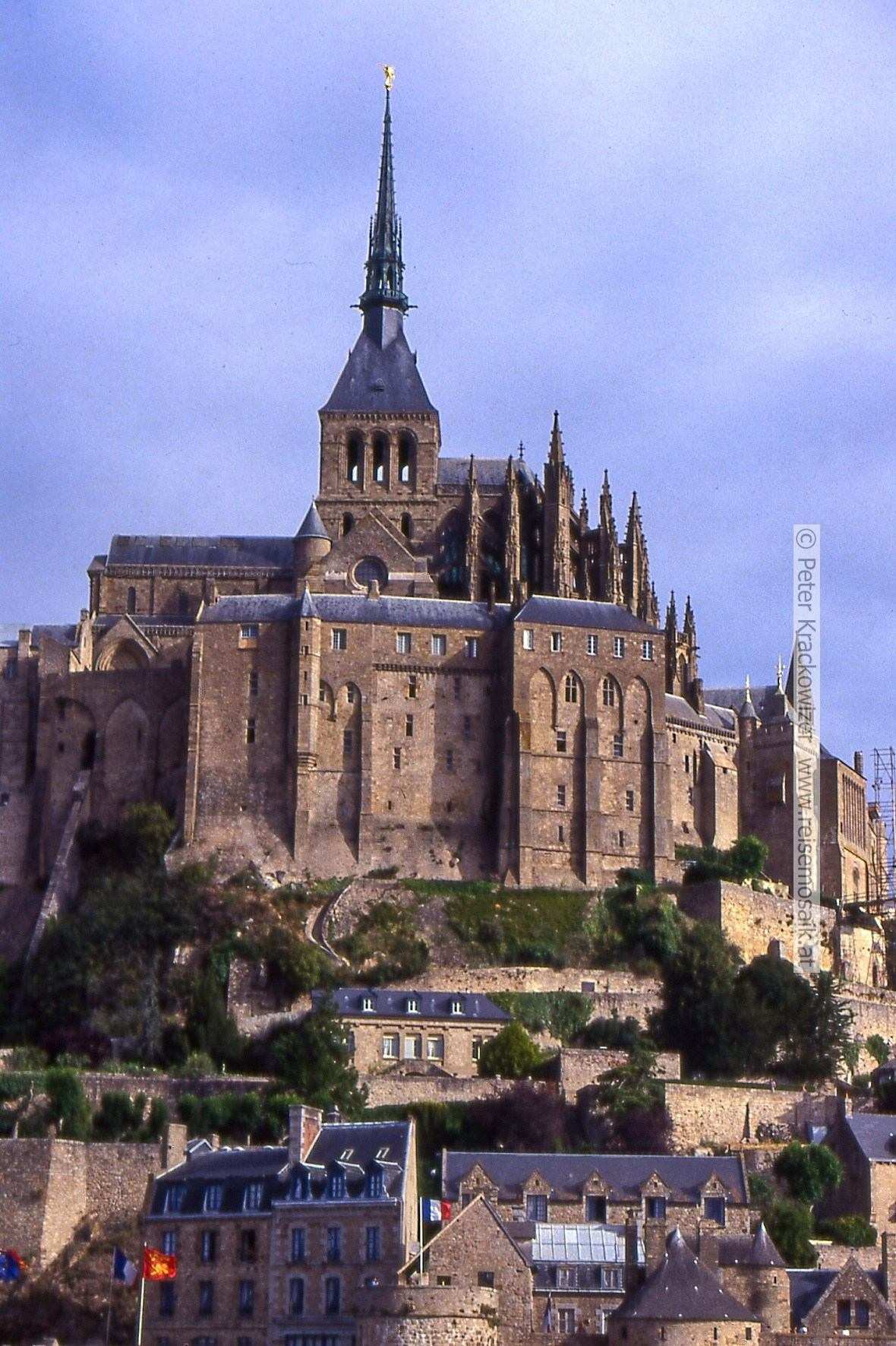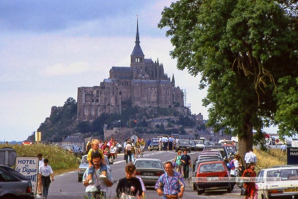Blick zum Kloster auf der Insel Mont Saint-Michel im Sommer 1993