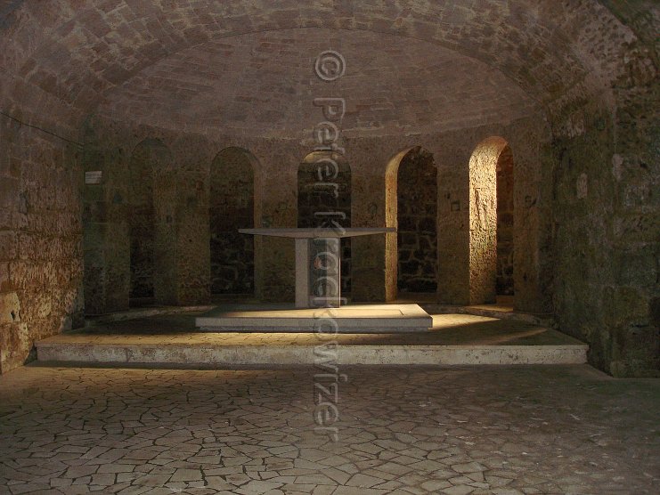 von links nach rechts: Nebenraum in der Krypta, Detail eines Pugnaloni,