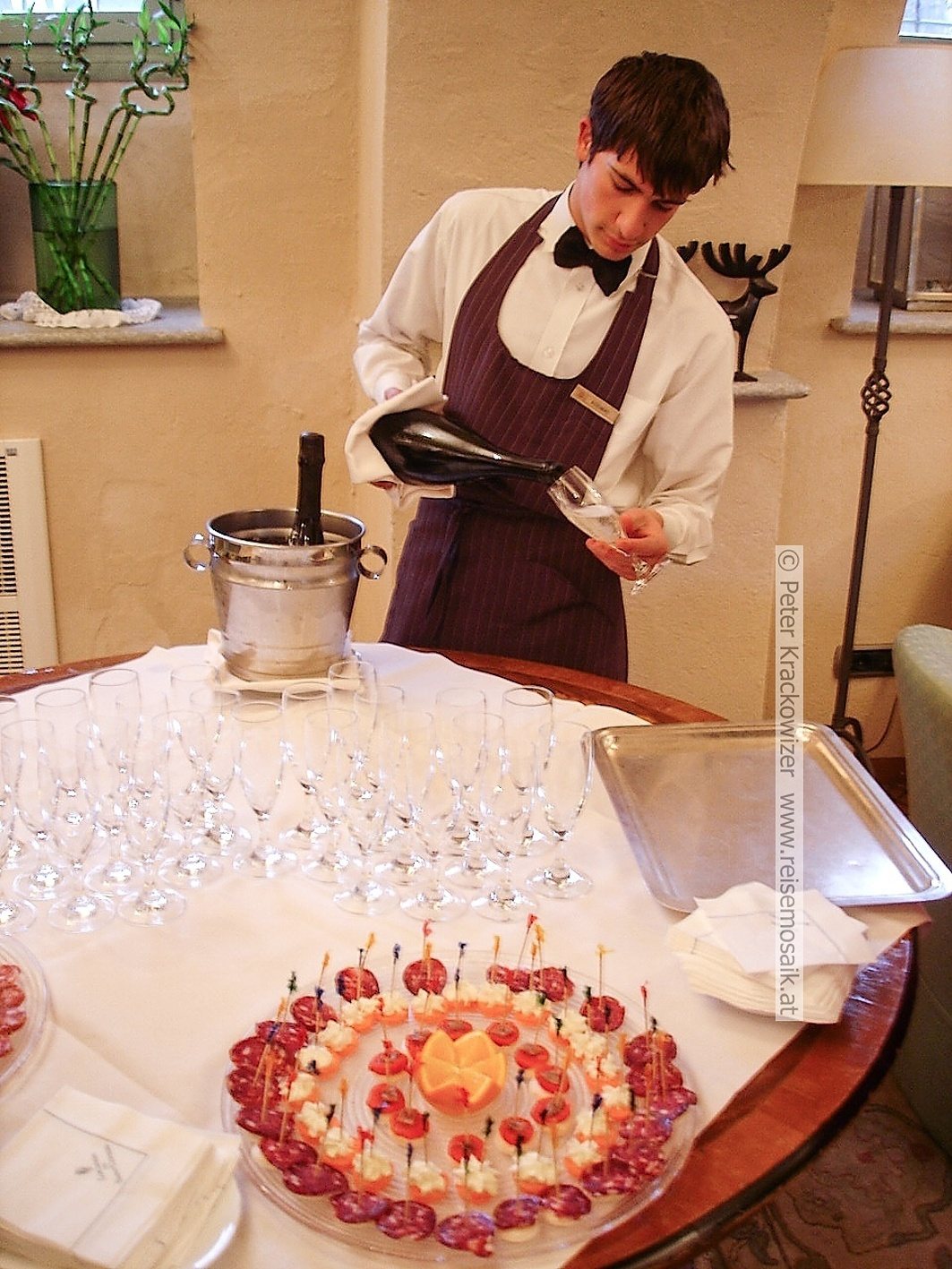 Diese kleinen Imbisse erhält man vor allem, wenn man einen Aperitif nimmt (den man in Venetien Golosessi oder Ombra nennt). Hier ein paar Beispiele für diese Happen (in einer Bar in Asti, Piemont) bzw. einem Aperitif in einem Hotel: