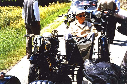 Sturzhelm - ein Kuriosum möchte ich noch erwähnen: Mein Vater fuhr nicht nur in seiner aktiven Rennfahrerzeit bis 1955, sondern noch einige Jahrzehnte lang immer mit ein und demselben Sturzhelm: einem, wie damals üblich gewesenen, Helm, der nur links und rechts über die Ohren Lederklappen hatte, die man unter dem Kinn zusammenschließen konnte, in den Farben rot-weiß-rot - so erkenne ich ihn noch heute auf seinen Fotos.