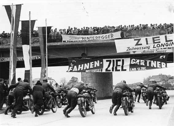 Interessant ist ein Blick in den Nationalen Sportkalender 1947 der Obersten Sportkommission in Wien. Darin stand ursprünglich "22. VI. Strassenrundrennen Salzburg (Rundstrecke Anif - St. Leonhard - Niederalm - Anif)". Letztlich wurde daraus am 6. Juli das Autobahnrennen in Salzburg-Liefering, das ab 1951 als 1. Mai Rennen legendär wurde.