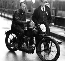 Sieger in der Klasse bis 350 cm³ auf Velocette in auf Velocette in 21:55 min.